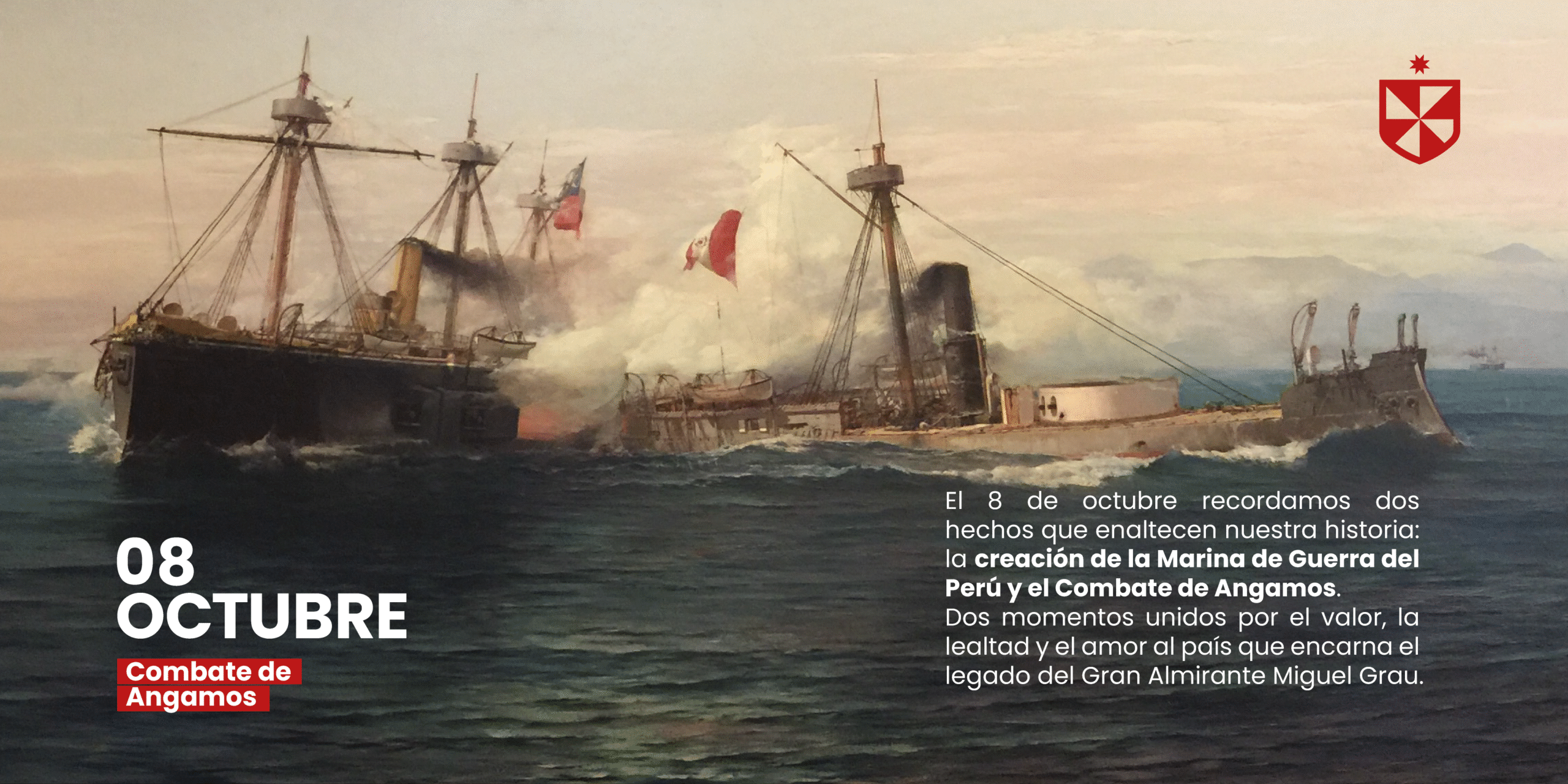Este 8 de octubre la Universidad de San Martín de Porres- Filial Sur, se une a la conmemoración nacional por el aniversario de la Batalla de Angamos, decisivo enfrentamiento naval ocurrido en 1879, durante la Guerra del pacífico y rendimos homenaje a uno de sus más ilustres héroes: el Gran Almirante Grau.