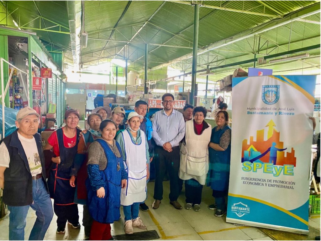 La jornada tuvo lugar en el Mercado Señor del Gran Poder y estuvo dirigida a los comerciantes del distrito de José Luis Bustamante y Rivero, con el objetivo de fortalecer sus competencias en la gestión económica y financiera de sus emprendimientos.