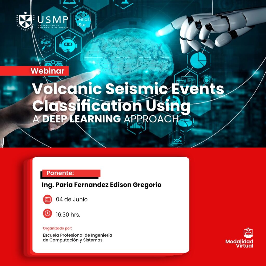 La Universidad de San Martín de Porres, Filial Sur, organizó el webinar “Volcanic Seismic Events Classification Using a Deep Learning Approach”, dirigido a estudiantes, investigadores y profesionales interesados en la aplicación de inteligencia artificial en geociencia.